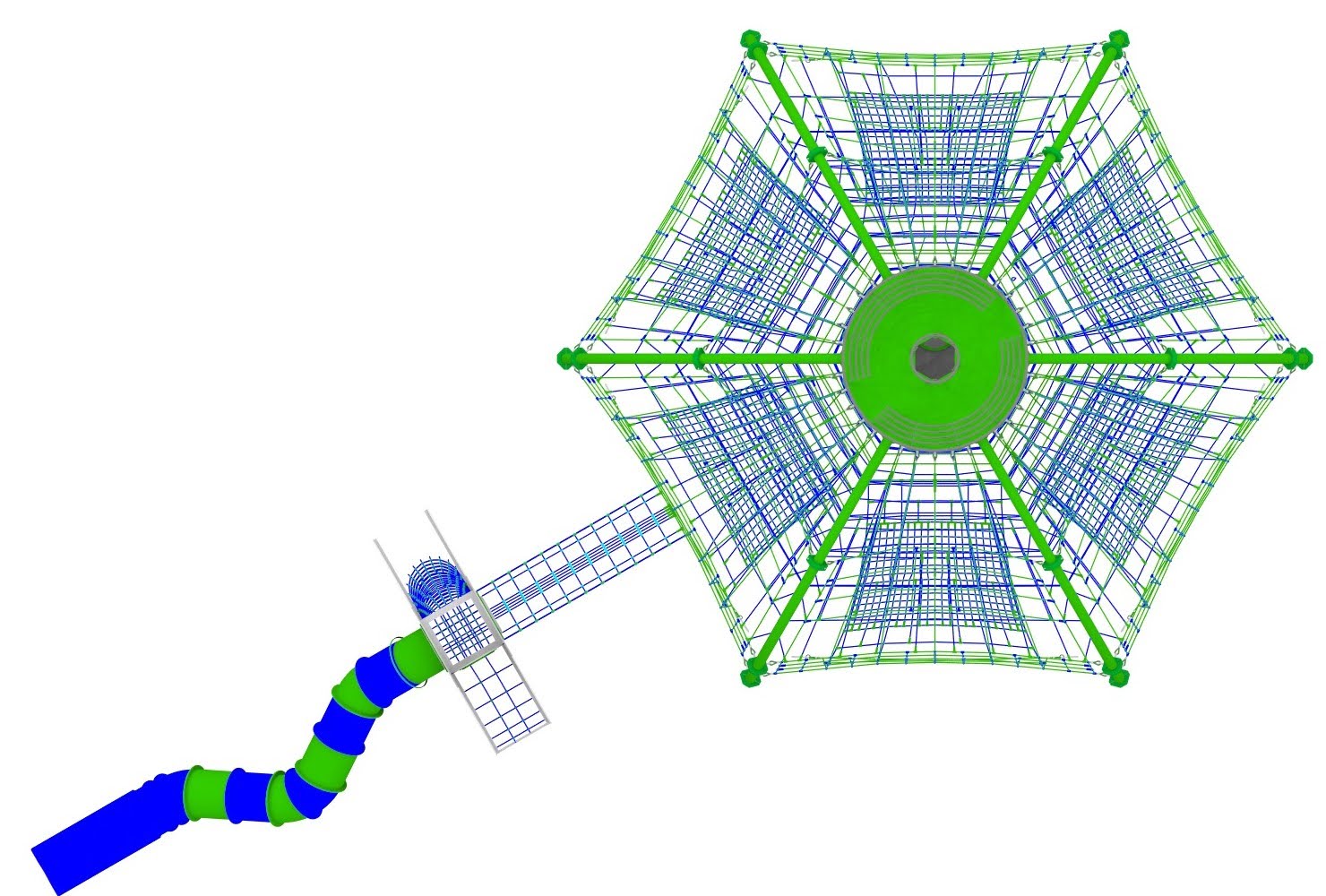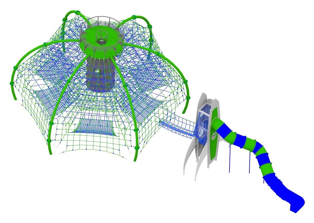 - wysokiej na 7,2m i szerokiej na prawie 11m konstrukcji linowej podpartej na stalowym szkielecie składającej się z czterech poziomów zwieńczonej bazą - platformą widokową; na całość będzie można wspinać się (zdobywać) różnymi drogami; wewnątrz konstrukcji znajdzie się miejsce kilka hamaków przeznaczonych do odpoczynku;