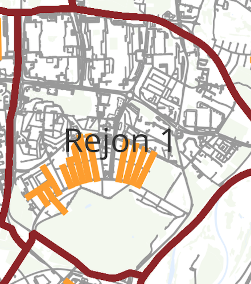 Jeśli projekt koliduje z innym zadaniem miasta lub organ zarządzający ruchem nie wyrazi zgody na wdrożenie kontraruchu/kontrapasa, ulica jest pomijana.